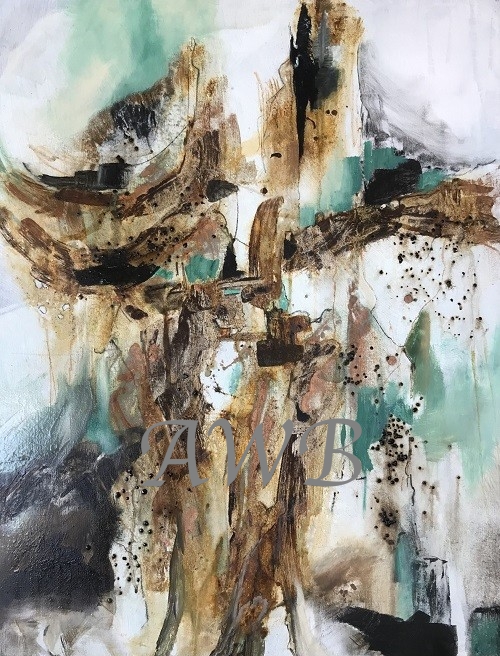 Description: Browns, ochres, blacks, and touches of gray-green and white pull the viewer inward with distractions along the way.