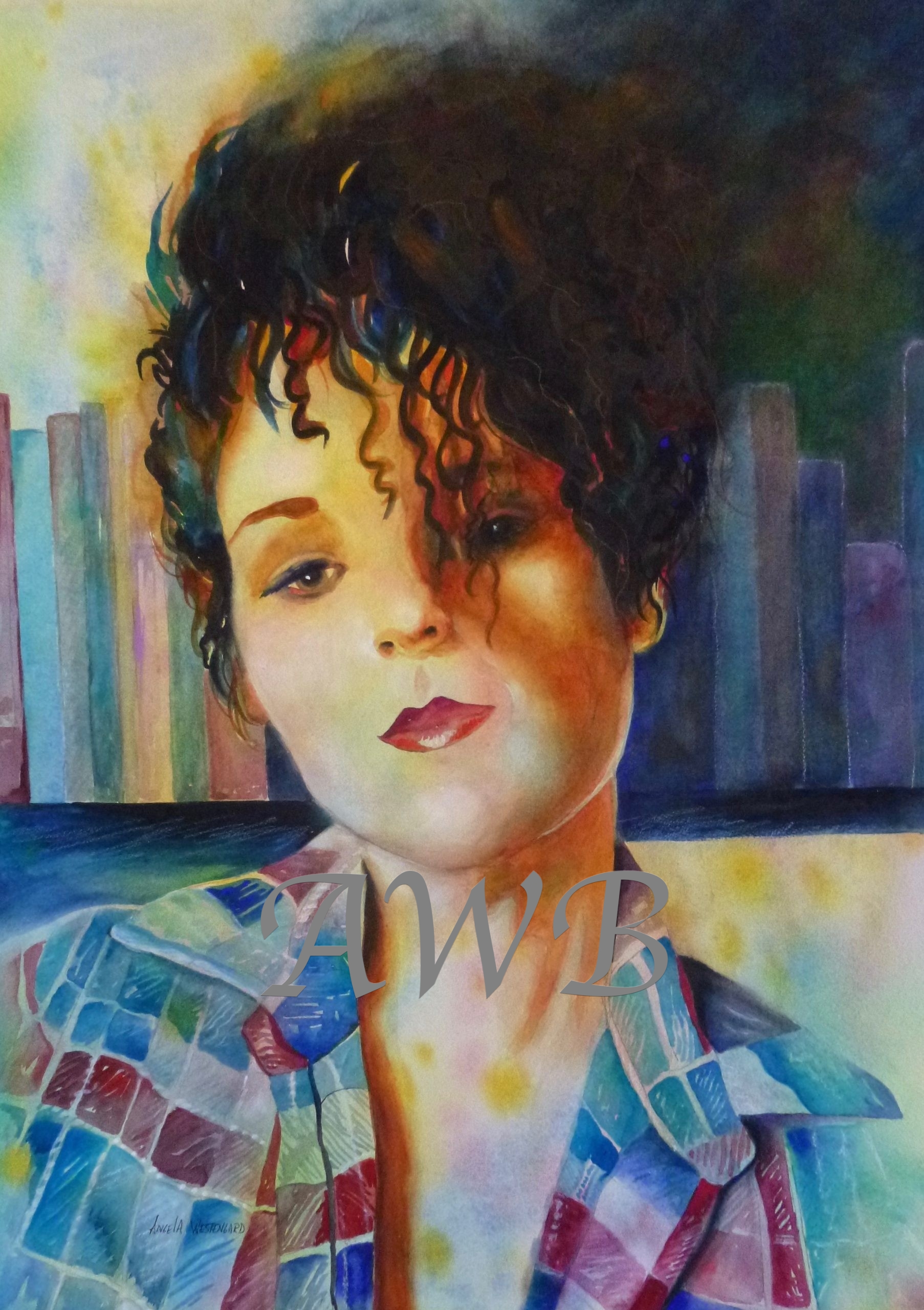 Description: The face of a young woman professor depicts strength and beauty in this unusual portrait.
